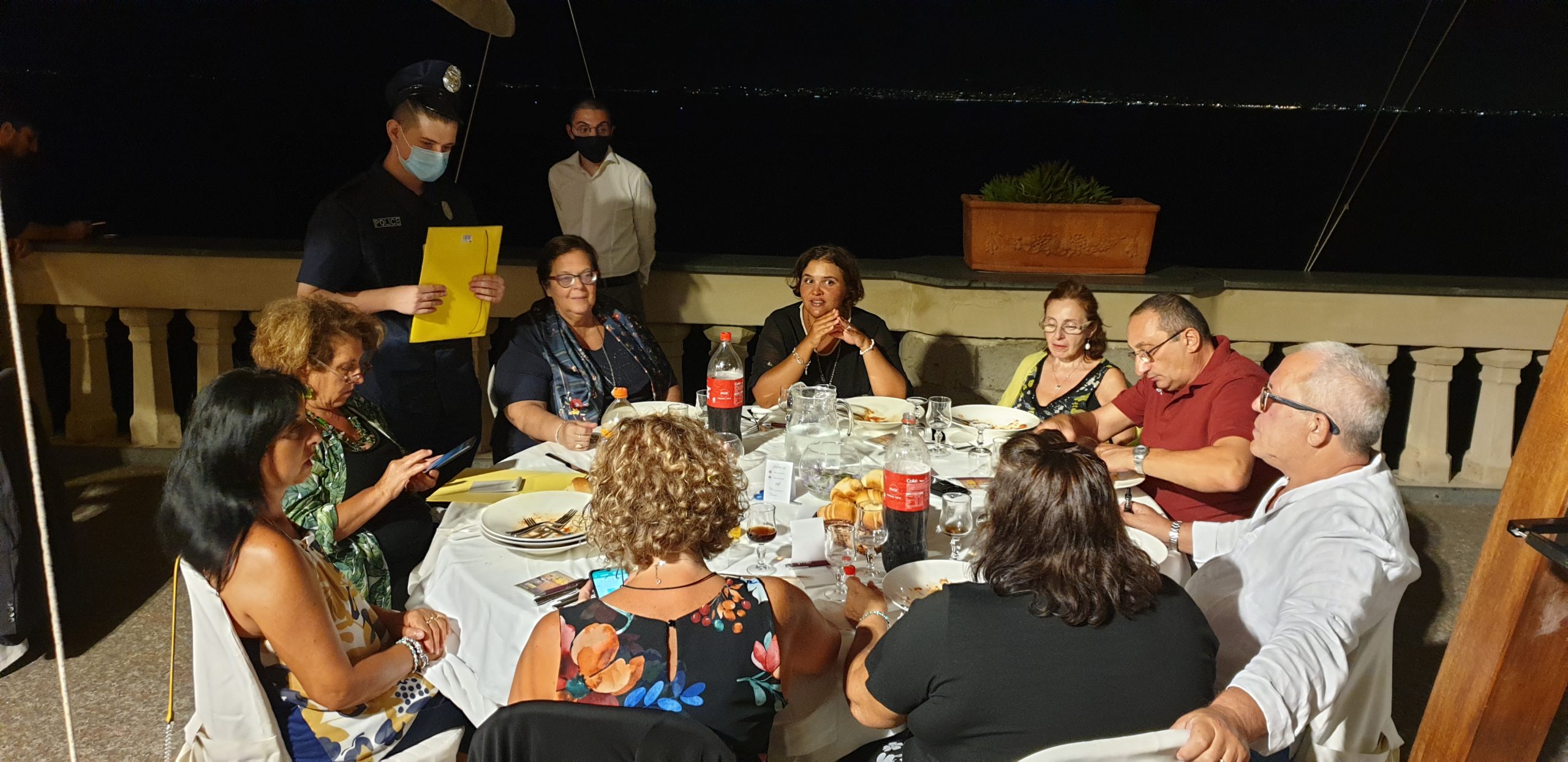 Gli ospiti sono stati accolti con un rinfrescante aperitivo, al tramonto, sulla bellissima terrazza di Villa Crawford, per poi recarsi alla terrazza sottostante del ristorante.