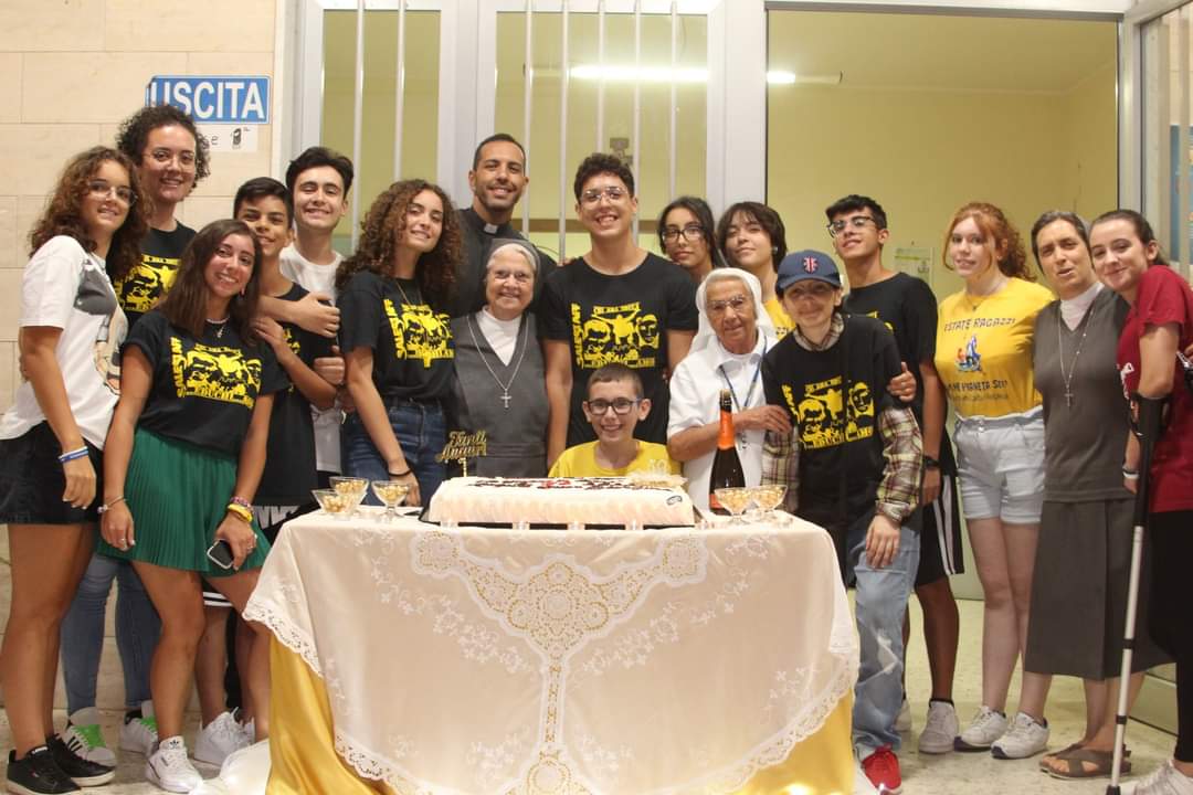 Cinquanta anni sembrano tanti, ma non per Sr.Giorgina che instancabile gira per il cortile tra animatori, pre-animatori, giovani del Servizio Civile e soprattutto ragazzi dell’oratorio. E proprio questi ultimi le fanno una sorpresa graditissima: preparano, senza che lei si accorga di nulla, un canto e una coreografia per farle gli auguri e dirle il loro affetto.