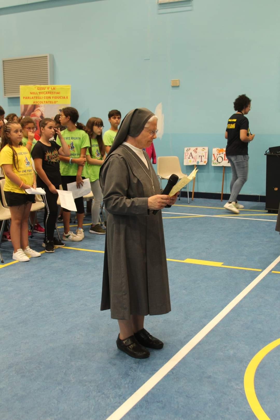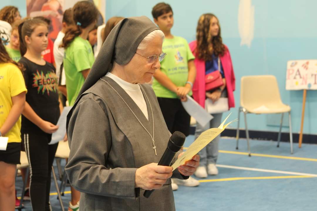 Sulle note della canzone: per fare un albero, i ragazzi preparano e cantano i passi importanti che Sr.Giorgina ha fatto per arrivare a dire il suo Sì definitivo a Gesù. Il momento di preghiera fa riflettere tutti i presenti sull’importanza di seguire il cuore e fare sempre il bene.