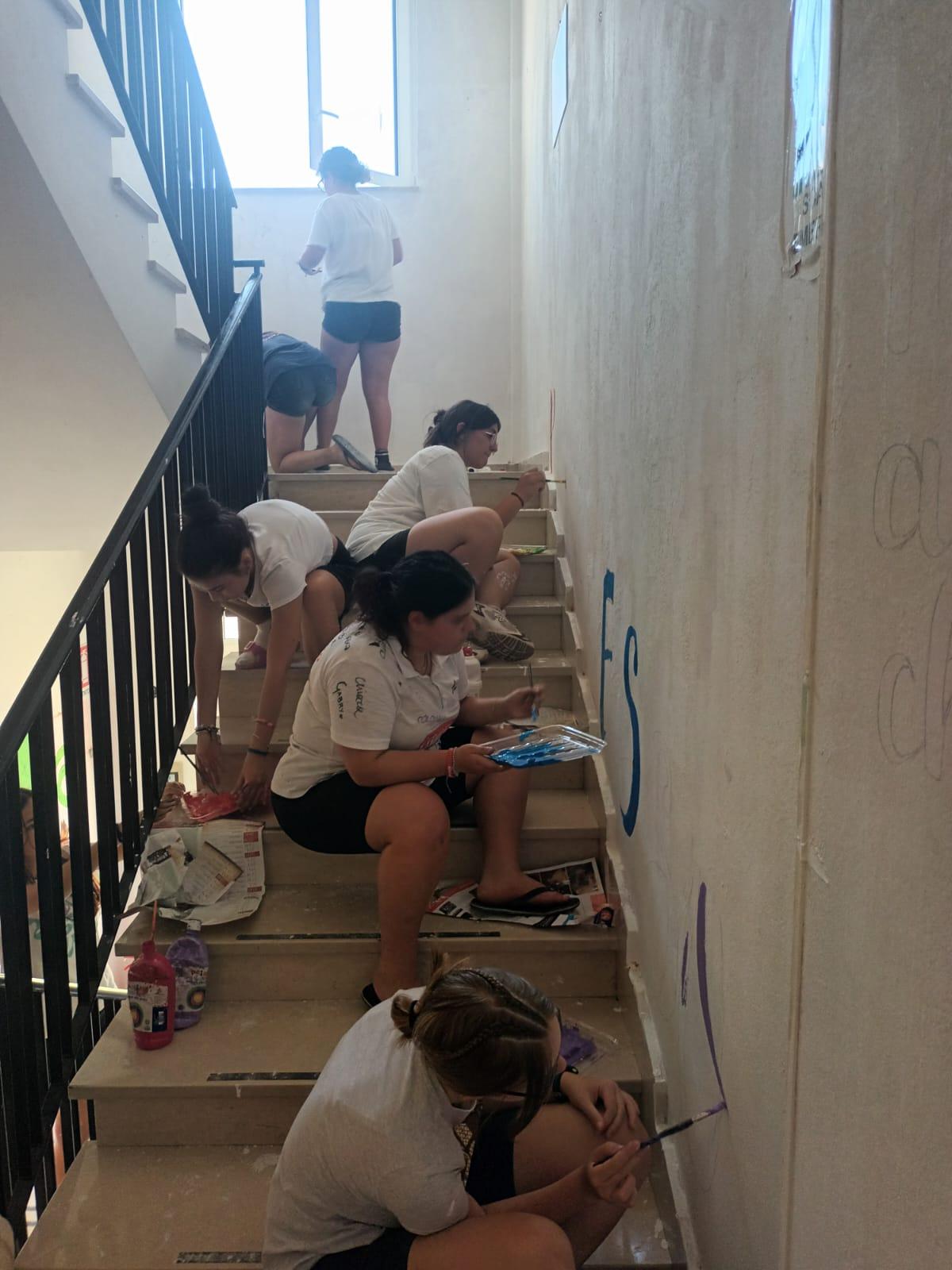 Nei pomeriggi i ragazzi hanno iniziato a tinteggiare le pareti delle scale dell’ oratorio, dove hanno riportato le “parole che vibrano”. Parole che aiuteranno sia a ricordare i giorni vissuti e a mettere in pratica ciò che hanno appreso e che, nello stesso tempo, potranno aiutare gli altri a prendere consapevolezza.
