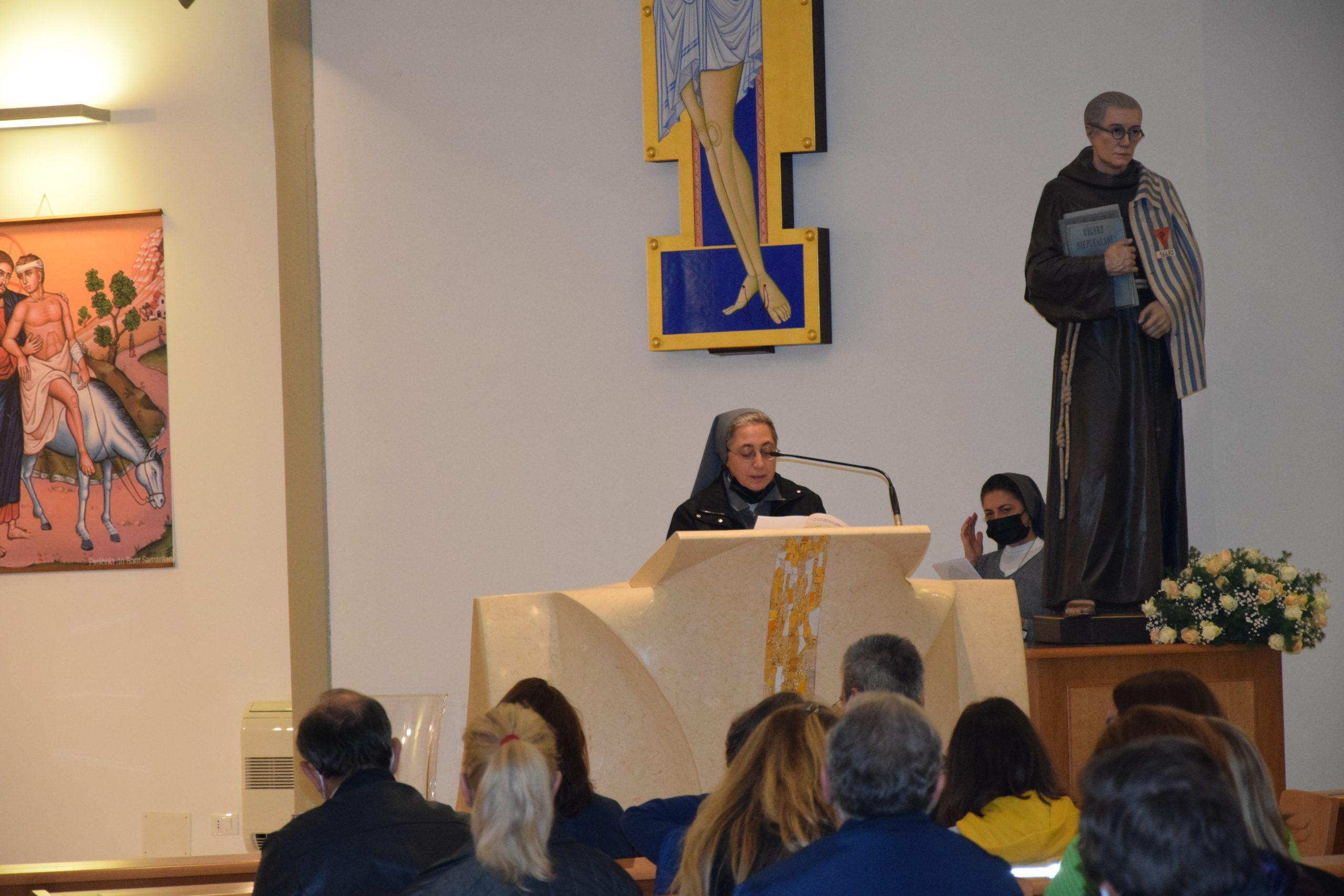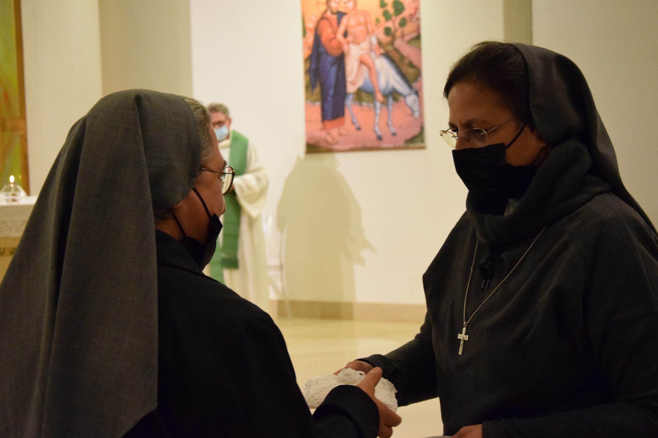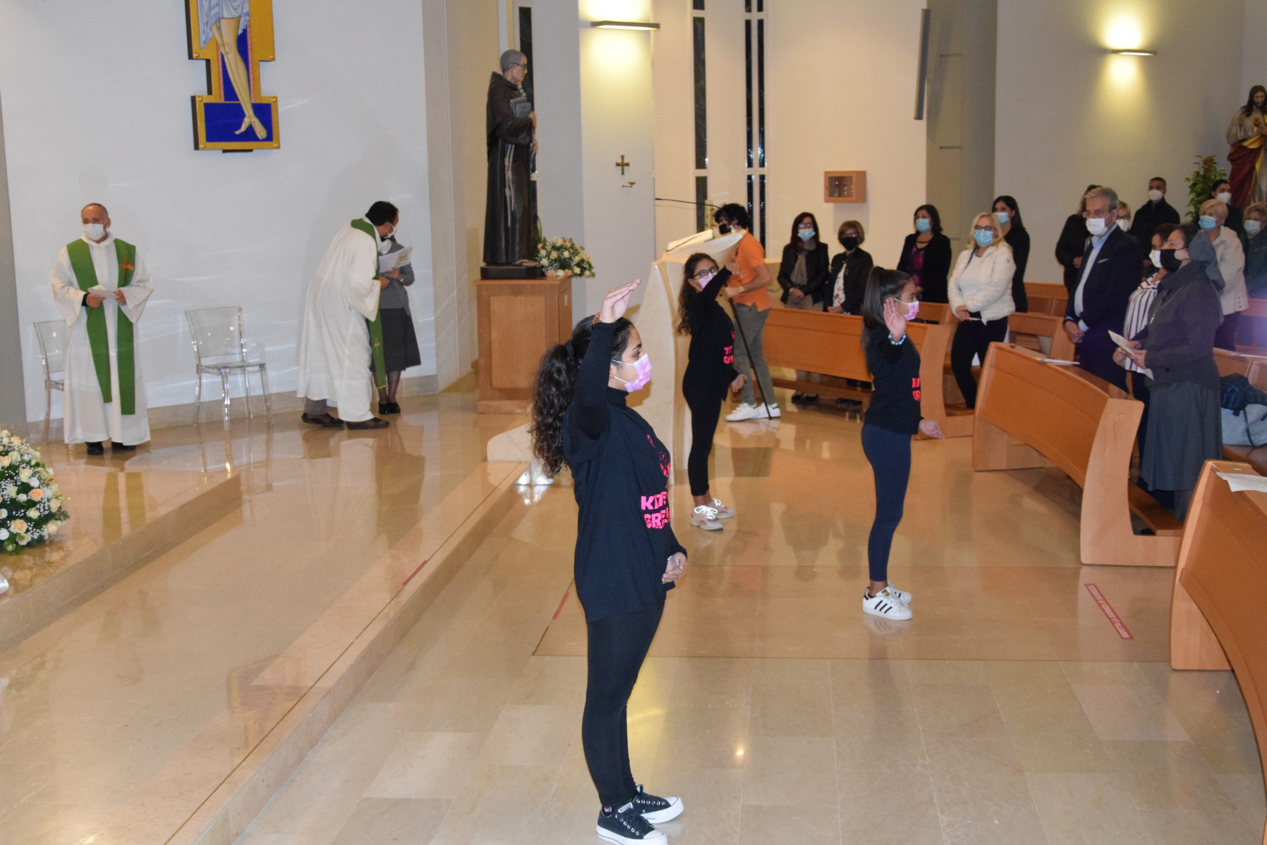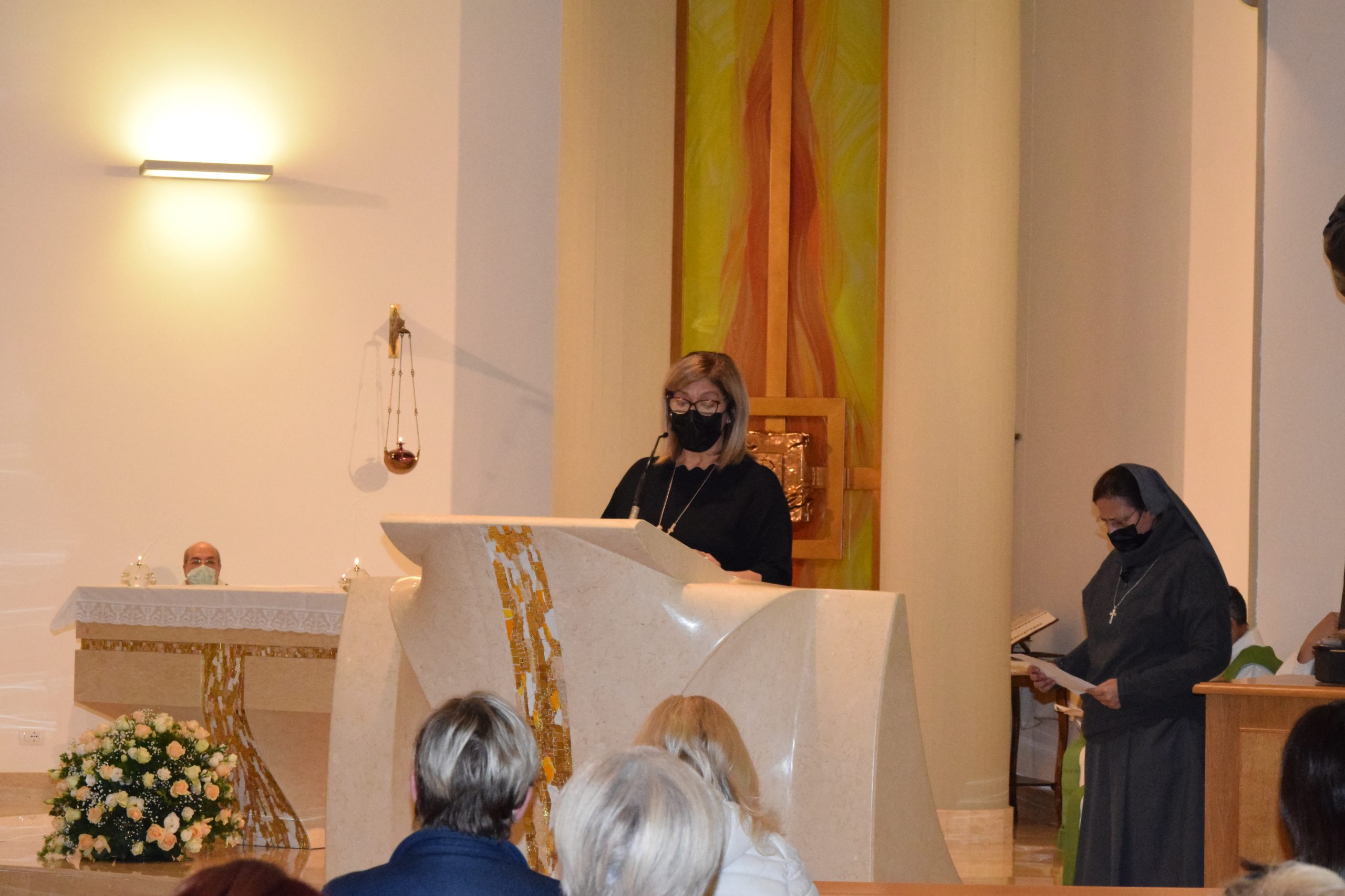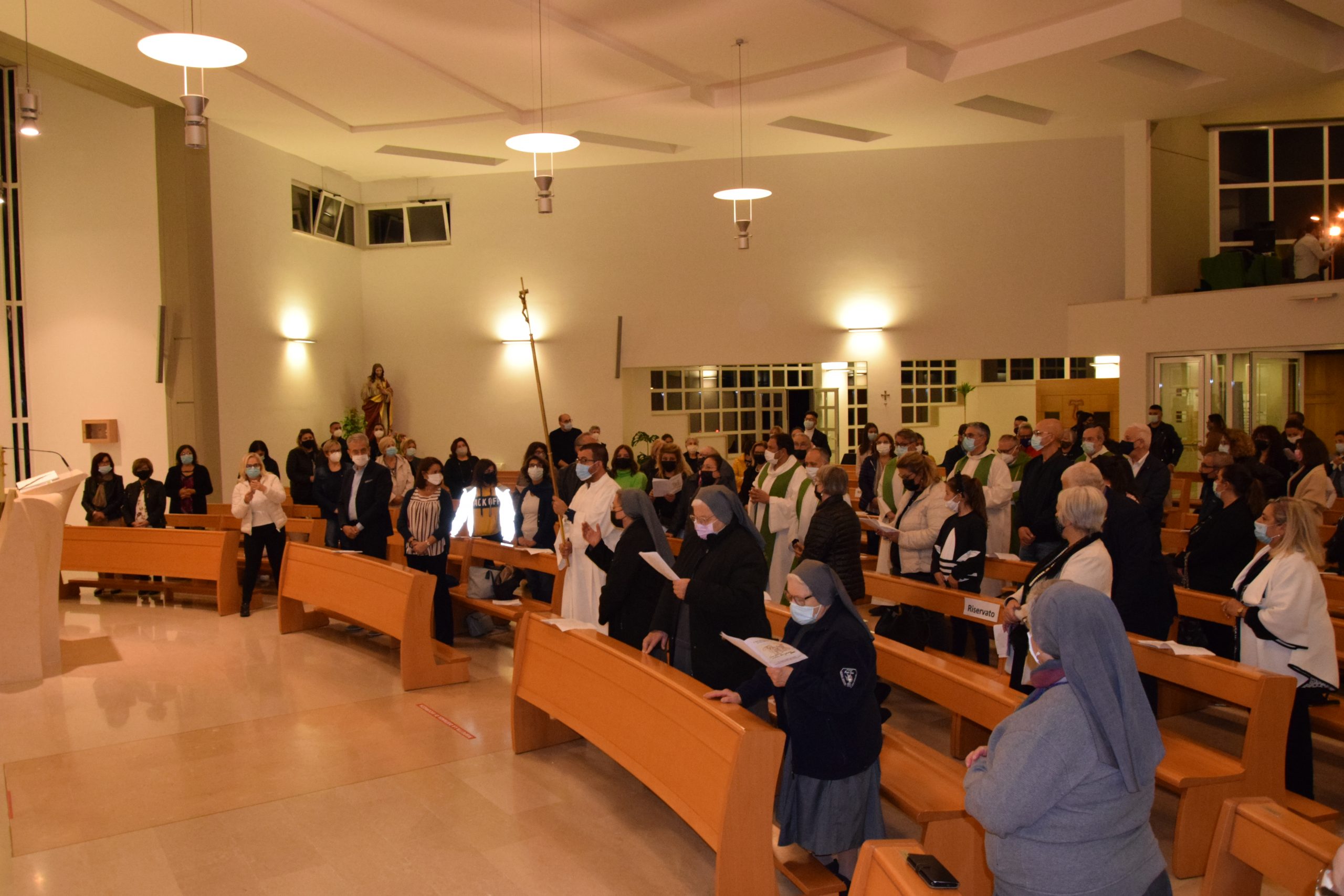 Sr. Mariarita ha aperto la processione introitaria, seguita da 6 sacerdoti, due sacerdoti salesiani, il Parroco fratello francescano e tre sacerdoti della diocesi.