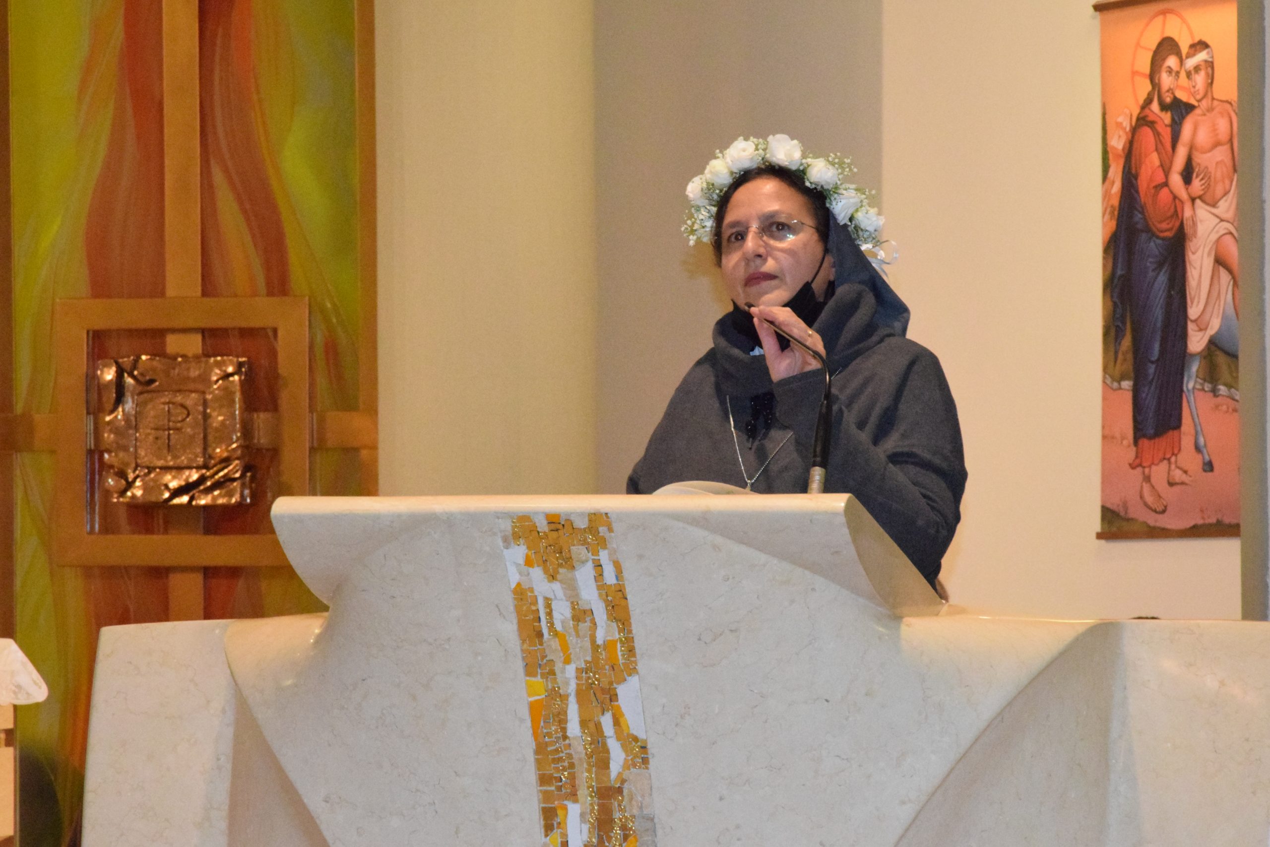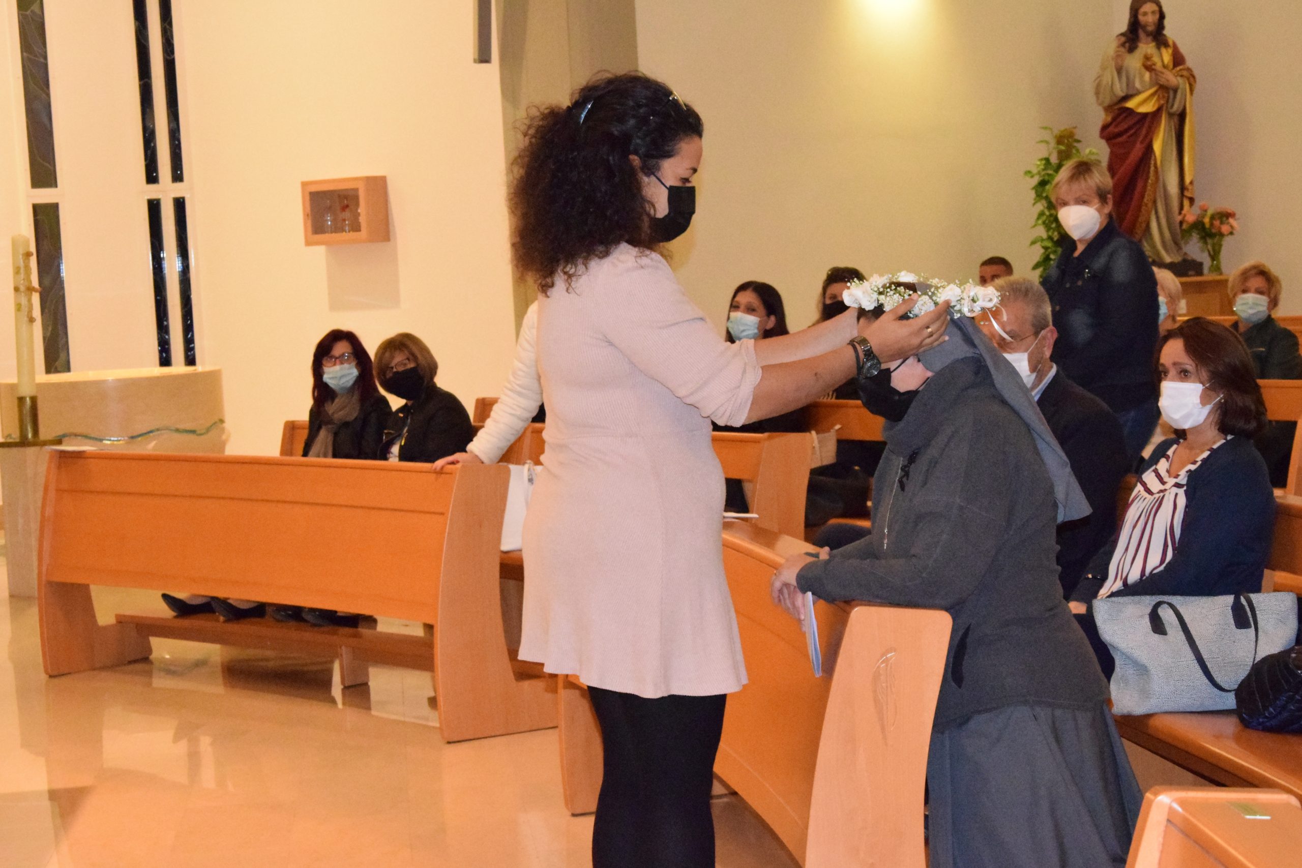 Ogni momento della celebrazione è stato carico di significato e di profonda emozione. Intensi sono stati i momenti della rinnovazione dei voti, della consegna dell’anello, simbolo-segno scelto da Sr Mariarita, portato all’altare da una delle giovani adolescenti dell’oratorio, sulle note del canto “Tu sei la perla preziosa”, del ringraziamento, in cui una animatrice ha posto sul capo di Sr Mariarita una corona di fiori.