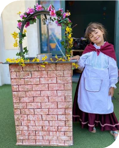 In mattinata una bambina del centro estivo, indossando gli abiti dell’epoca, ha interpretato il ruolo di Main e animato il momento di gioco.